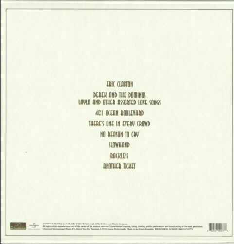 The Studio Album Collection 1970-1981 – 2016 UK Deluxe Edition NINE vinyl LP boxset comprising the Eric Clapton, 461 Ocean Boulevard, There’s One In Every Crowd, No Reason To Cry, Slowhand, Backless, Another Ticket plus the Derek And The Dominoes albums. All albums are housed in their individual picture sleeves together inside a SEALED gold-embossed two-piece textured card slipcase!