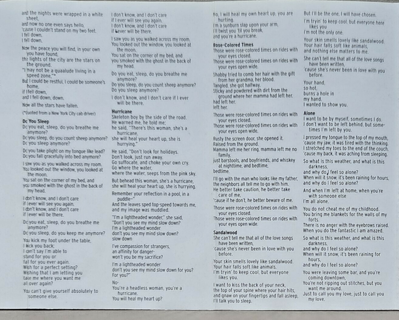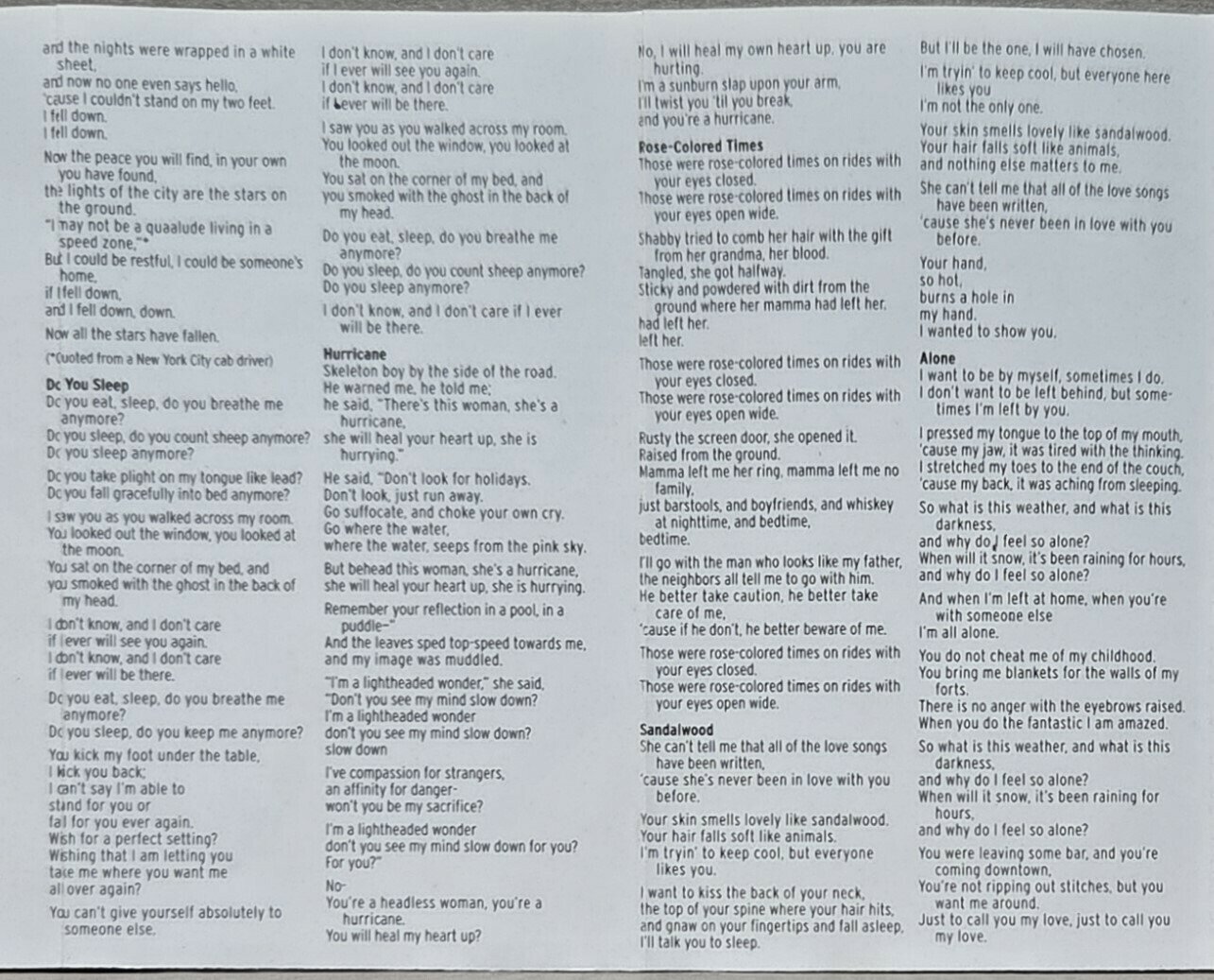 It's Over / Snow Day / Taffy / When All The Stars Were Falling / Do You Sleep? / Hurricane