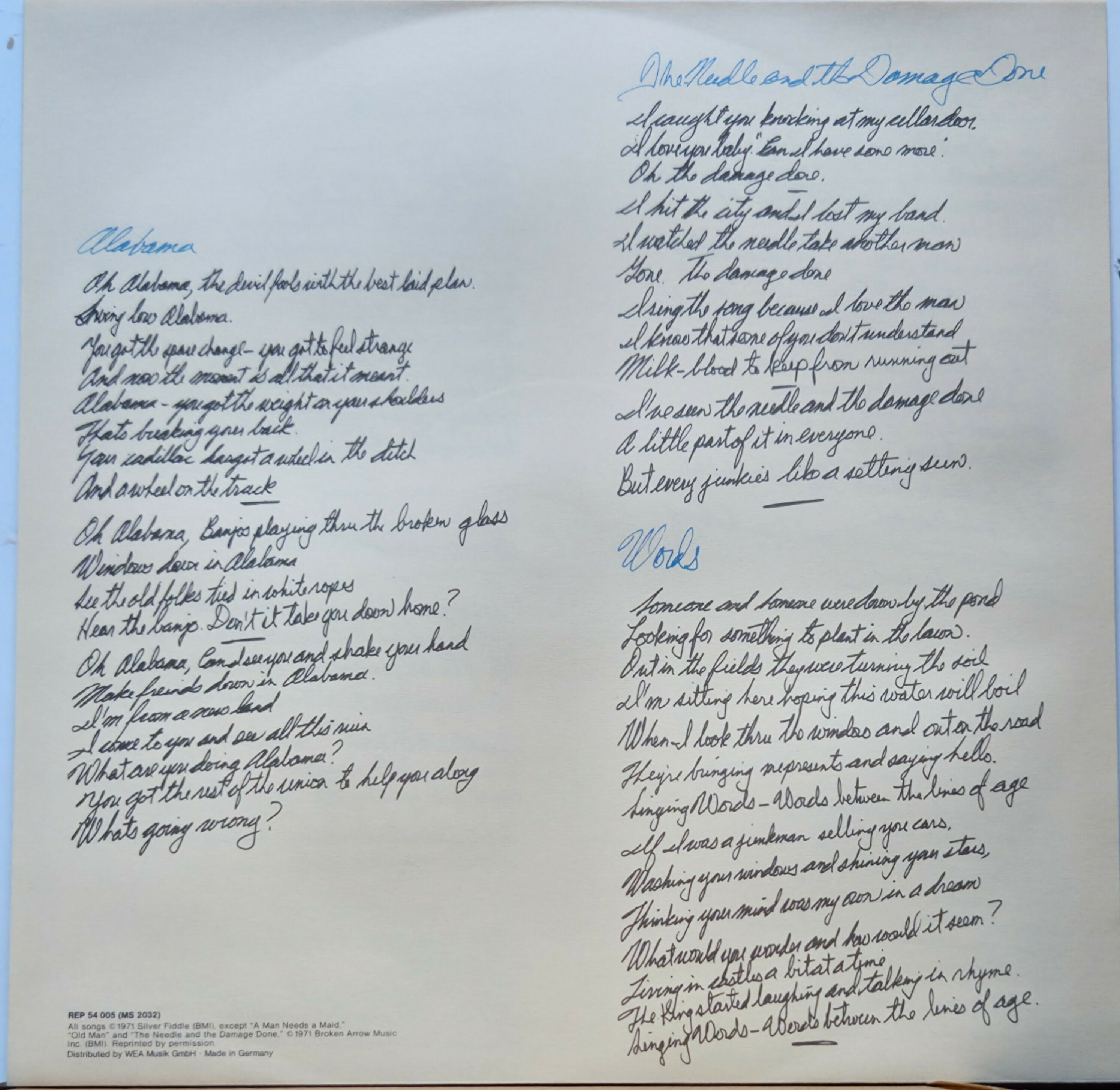 Old Man / There's A World / Alabama / The Needle And The Damage Done / Words (Between The Lines Of Age)