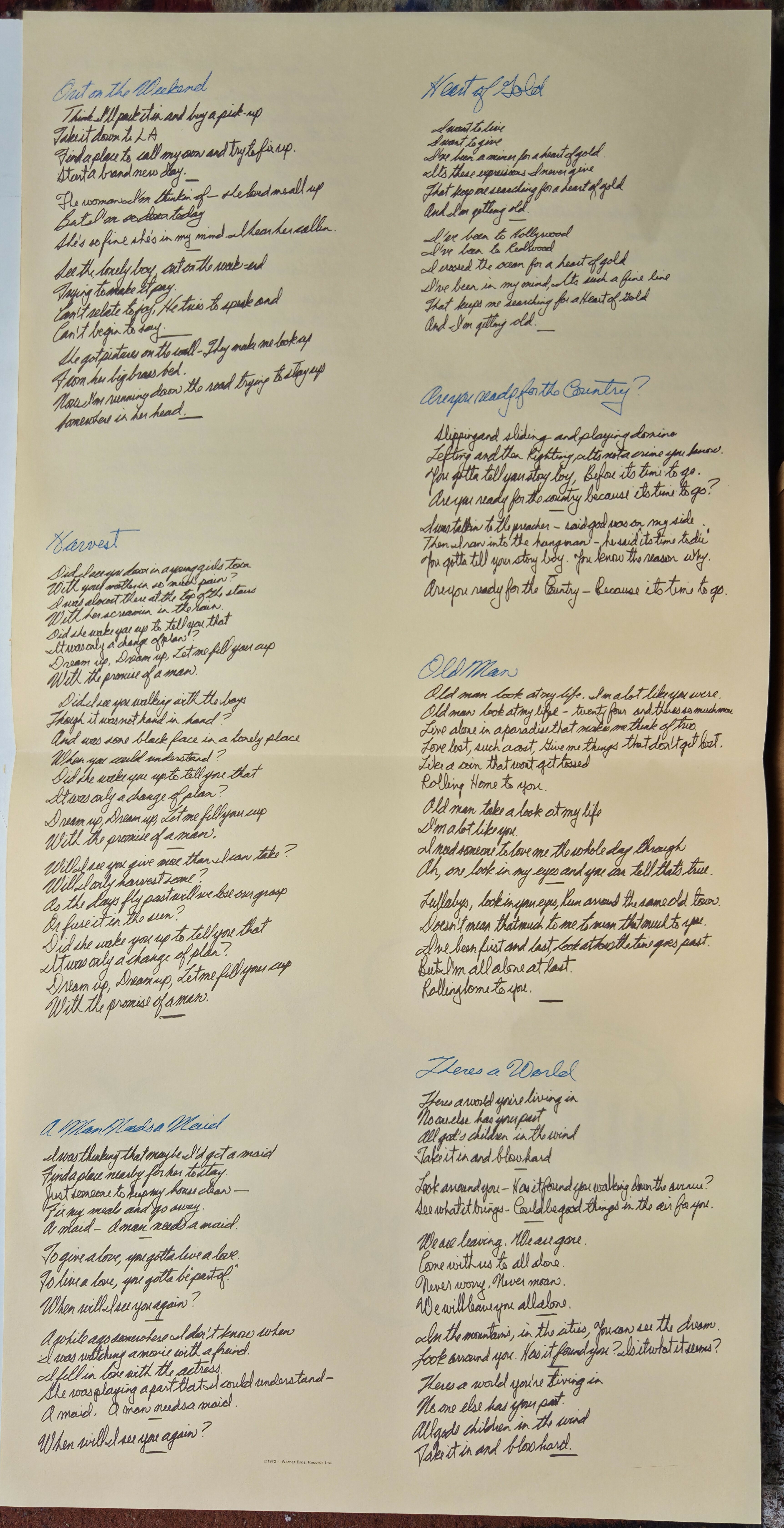 Out On The Weekend / Harvest / Heart Of Gold / Are You Ready For The Country